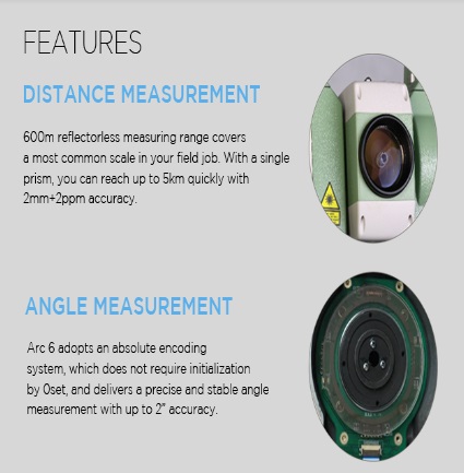 کمپانی سندینگ با تولید توتال استیشن سندینگ Sanding مدل Arc6 ، با ویژه گیهای خاص از جمله : سنسور اندازه گیری دما و فشار هوا و اعمال مستقیم ضرایب محیطی روی اندازه گیری ها، محیط نرم افزاری مشابه لایکا، صفحه نمایش رنگی، درگاه کارت حافظه، بلوتوث، برد لیزر در حالت بدون منشور تا 1500 متر، امکان اتصال کابل رابط، سبد تنوع محصولات خود در امور نقشه برداری را بیش از پیش برای مهندسین نقشه برداری حفظ کرده است . این نسل از دوربین توتال استیشن لیزری سندینگ بر پایه آخرین دستاوردهای علمی در صنایع اپتیک و الکترونیک در سال 2021 باز طراحی، تولید و روانه بازار شده اند.